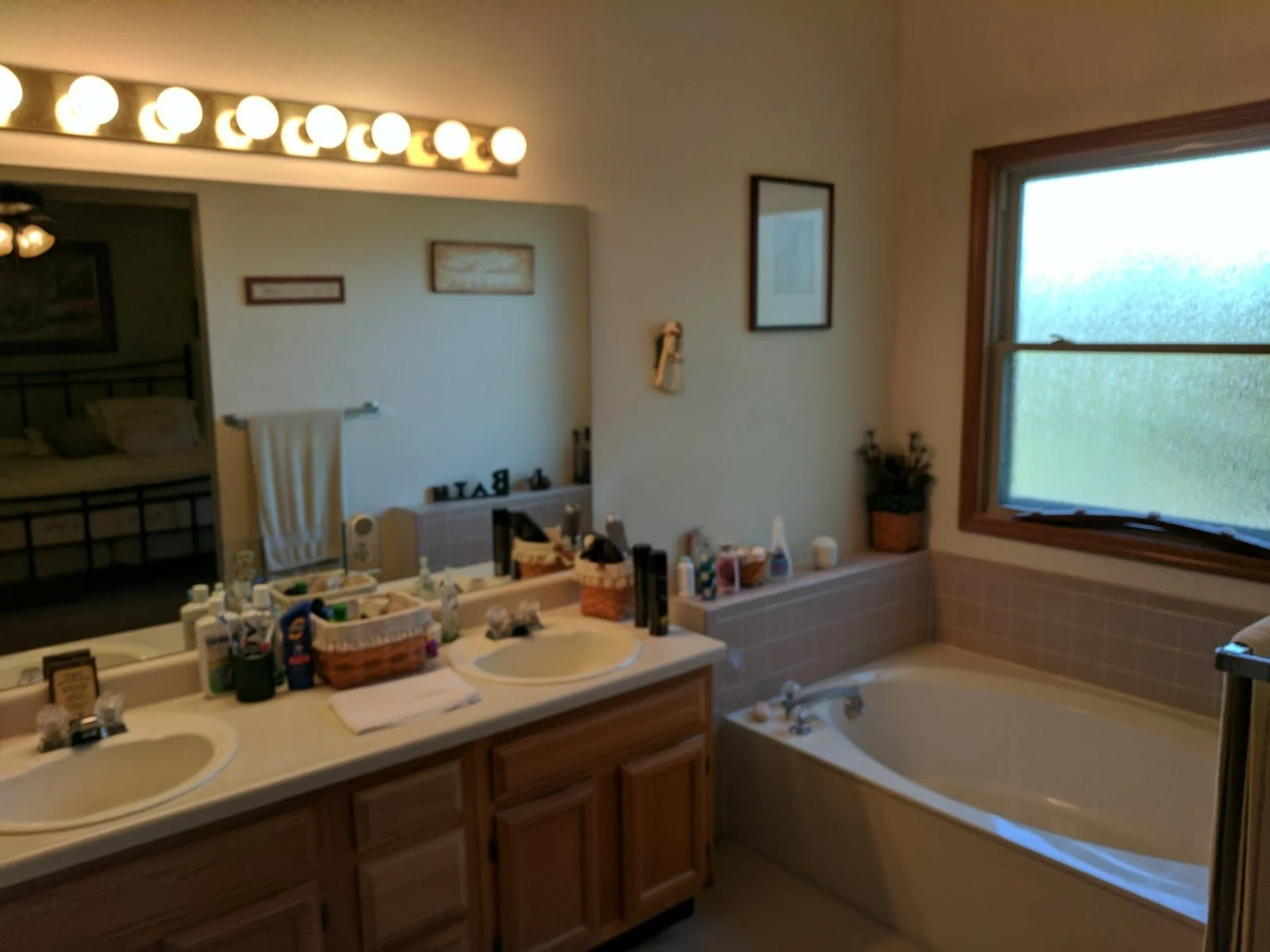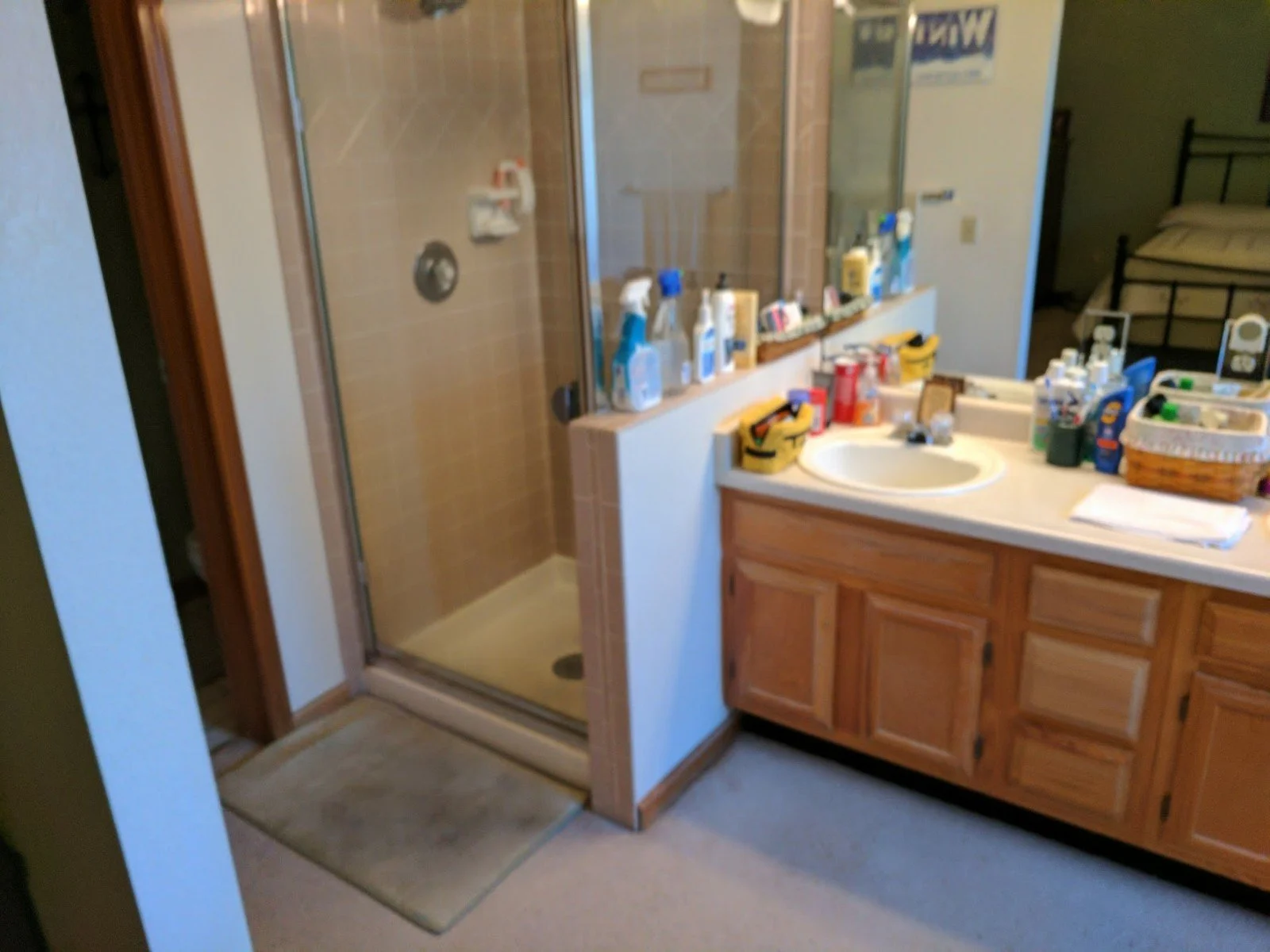 This bathroom started out as a 5-piece en suite, complete with a water closet. However, this space was monopolized by an unused bathtub. After discovering that the shower in this particular household is utilized far more than the dust-collecting bathtub and that the water closet needed to donate about 1.5’ to the new laundry room, we decided to shake things up a bit. We did away with the water closet and bathtub entirely and added a large walk-in shower. The double vanity in the original bathroom was fairly cramped, so we expanded that as well. Sometimes when space is limited, it’s best to include less items but make them more spacious…rather than cramming in all 5 elements at the expense of practicality and the feeling of spaciousness.