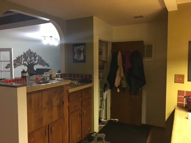 Originally there was a large room to the left of the kitchen that extended back far past the kitchen wall. Because of it’s location and size, it was not a useful room at all and ended up collecting random furniture and odds and ends. The garage entrance was in the center of the kitchen space, so we shifted this entry around to the back, giving the family a true mud room, complete with entryway lockers and a convenient drop zone for purses, keys, etc.