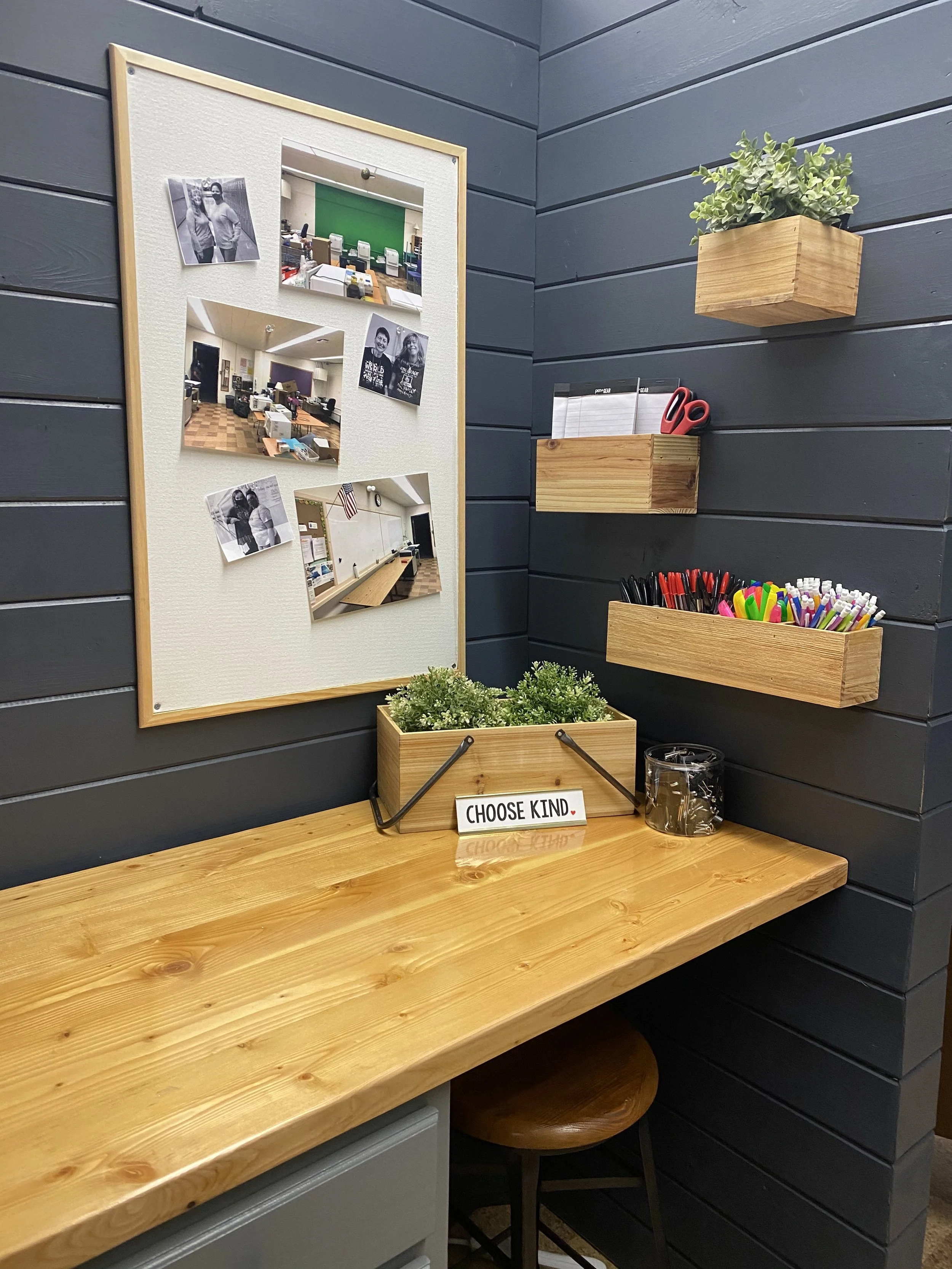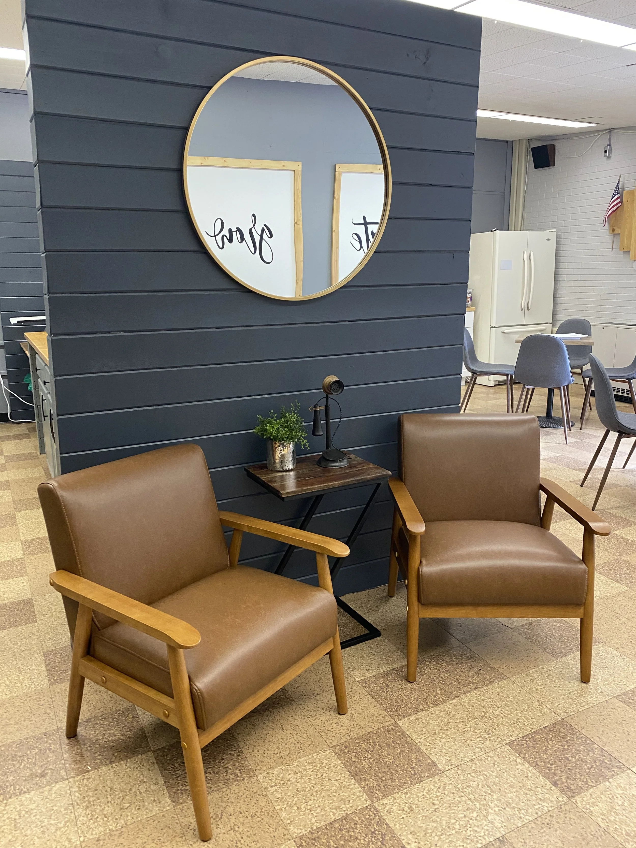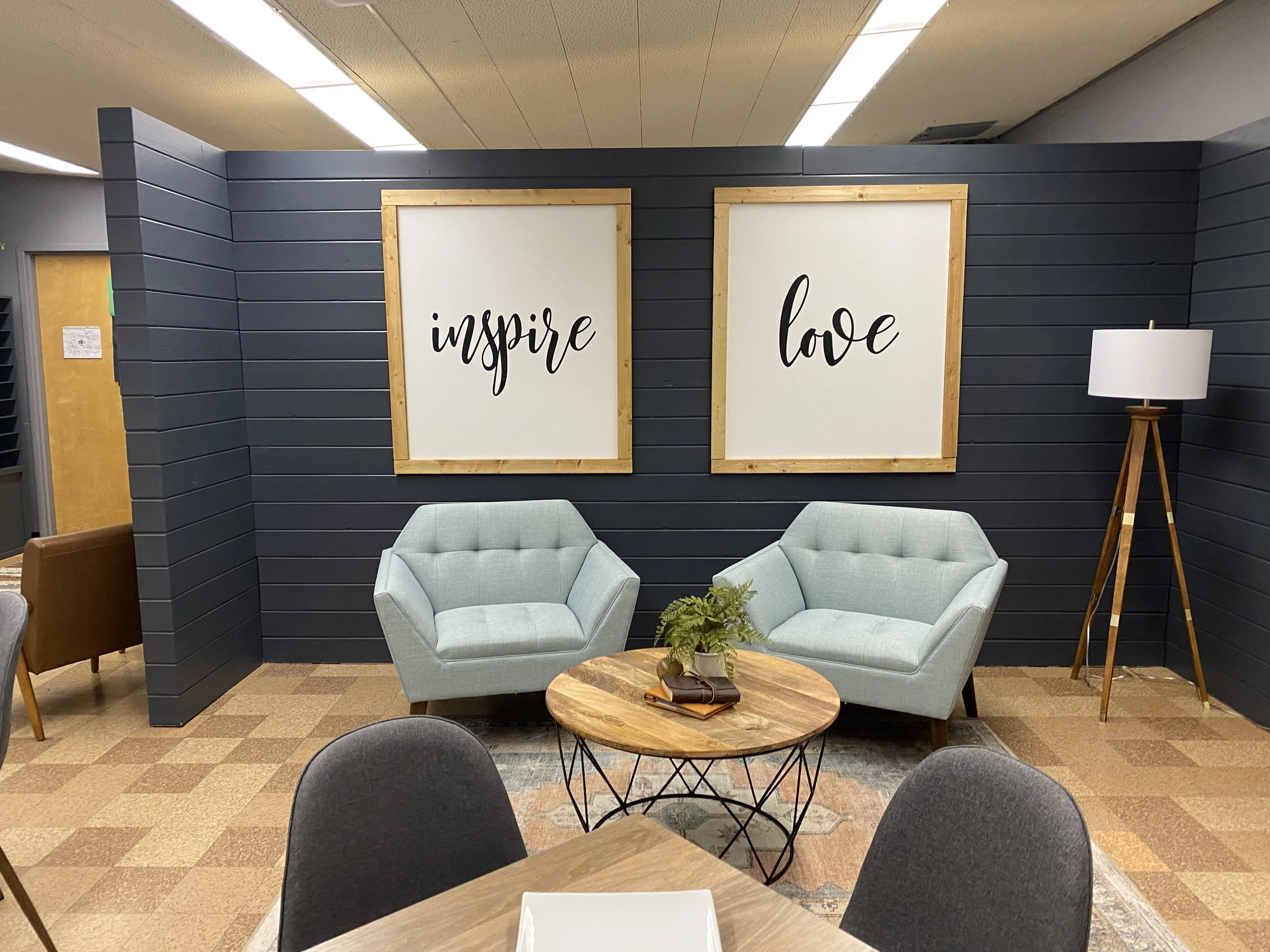 Near the downtown area of Colorado Springs, Mann Middle School was built in 1959. The teacher’s lounge was an old technology classrom that had been turned over to teachers. It was also the copy room, storage room, and general dumping zone for anything that seemed related to teachers. With the support of many local businesses, churches, and a business group called The Success Collective, we were afforded the opportunity to completely reimagine the space and turn it into something beautiful.
